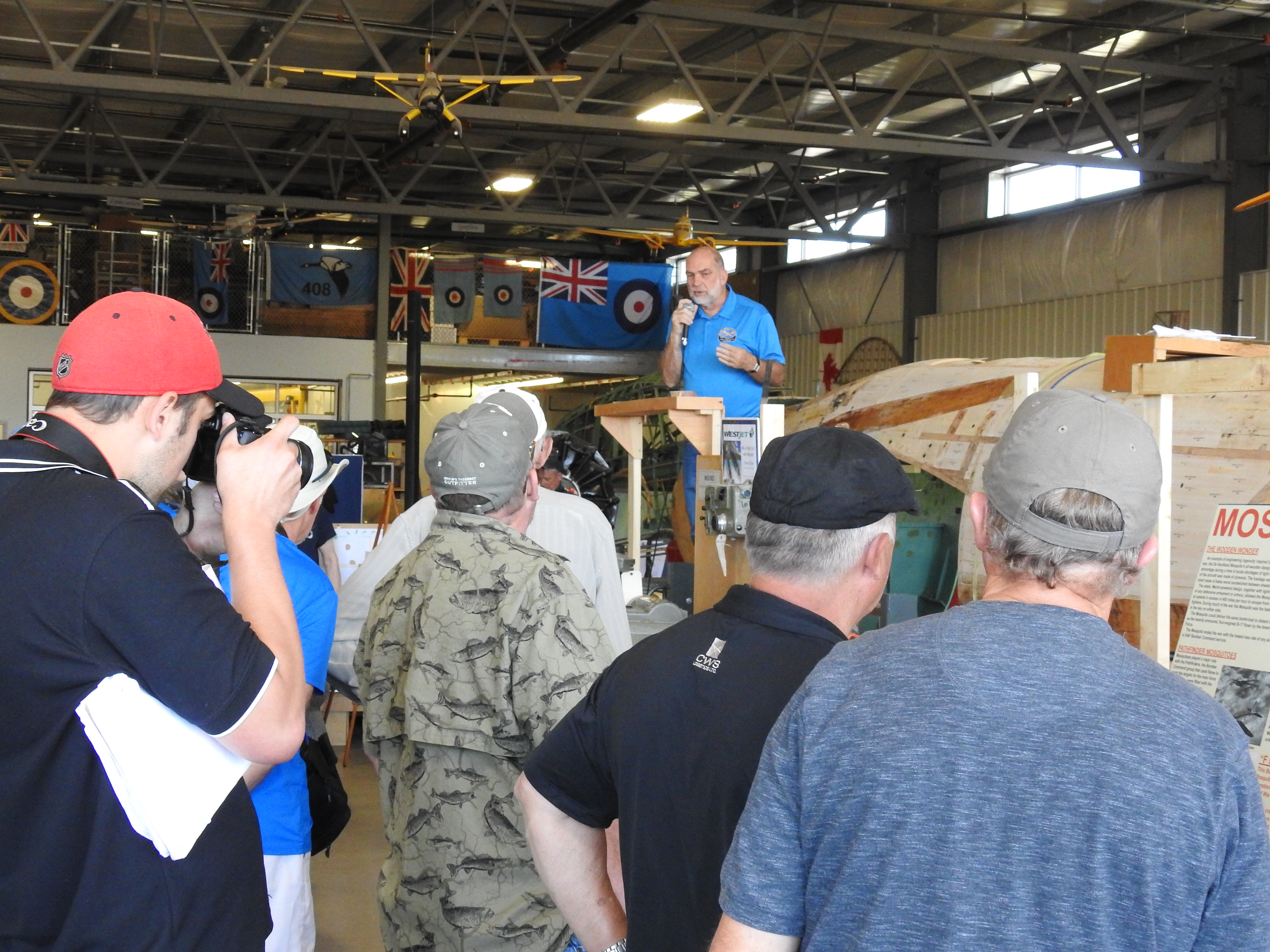 This quarter got off to a rousing start with hundreds of visitors attending Mosquito Celebration Day on July 7 at the Bomber Command Museum. For this event we held a silent auction, created new artifact displays, set up merchandise and book sales tables, gave tours of the restoration progress and gave an illustrated presentation on the "13 1/2 Amazing Things About the Mosquito". The museum contributed to the festivities with two engine run events by the Lancaster bomber and by the Bristol Hercules engine.