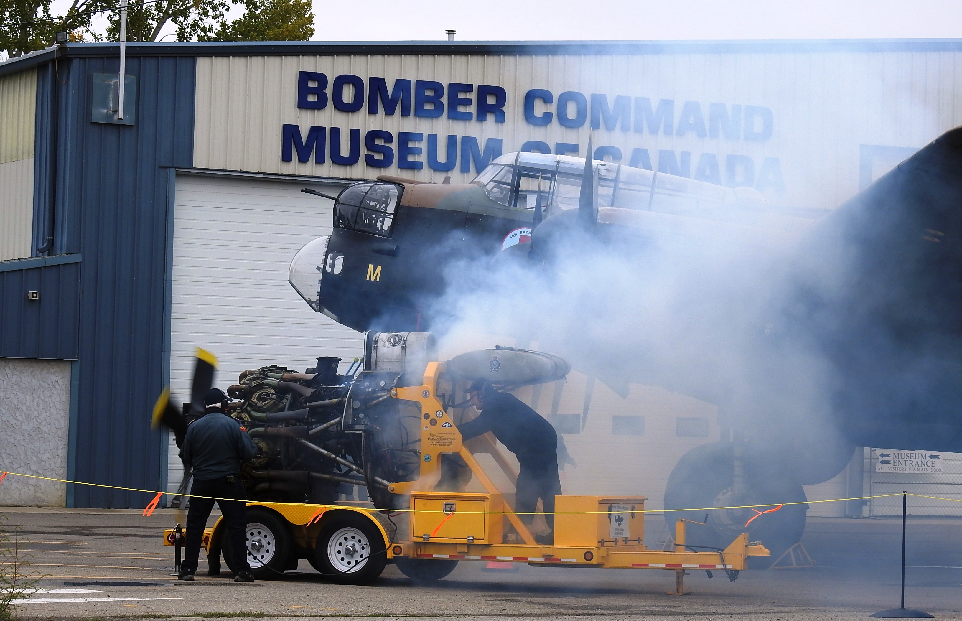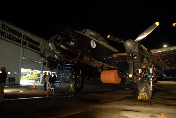 With a replica of the famous 'Upkeep' bouncing bomb strapped in and ready to spin, the Lanc crew readies for a night run. Some of the largest crowds ever attended the Saturday events.