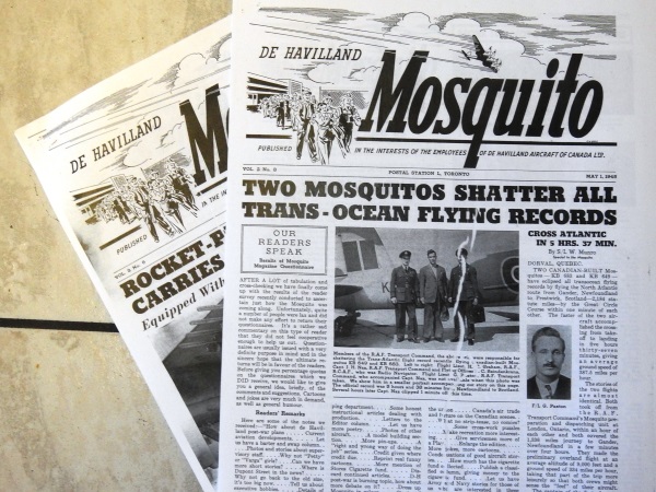 And on the subject of generous friends, our thanks to David Coeshall for sending us an original 1943 maintenance manual for a Canadian built FB.26 Mosquito. We were able to copy it and add it to our growing library of technical references. Thanks also to Ward Skinner of Halifax, NS for the two copies of the de Havilland Canada factory newsletter from April and May 1954. A nod also to Don Farrell of Calgary, who donated five wartime scrapbooks compiled by his mother during the war. Filled with newspaper clippings, they focus on the Calgary and area boys who joined up, many of whom never made it home. Of particular interest to us are the original newspaper clippings of the arrival in Calgary and the untimely demise of Mosquito F for Freddie, the day after VE Day.