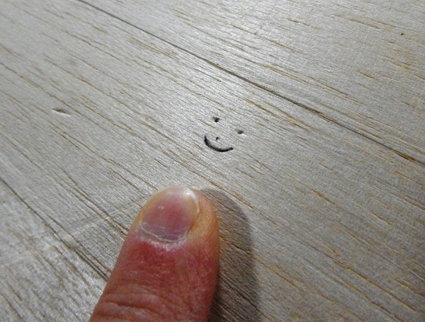 Fingernails and happy faces. Some young visitors decided to see how soft balsa really was and left us this little souvenir of their visit.
