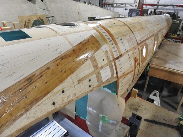 As well, Mike and Don have been pulling epoxy through the grounding strap nail holes to bond more of the internal skins.