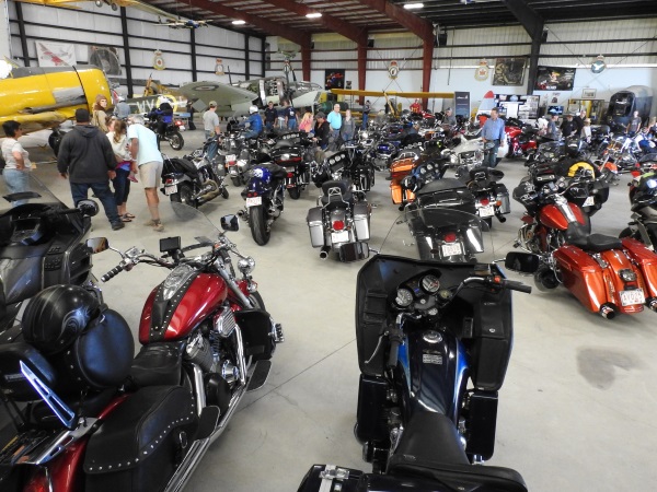 More motorcycles than you can fit into the hangar. Hundreds now attend this very popular event which also features a 'show and shine' car club event as well. Keeps us busy giving tours and selling merchandise.