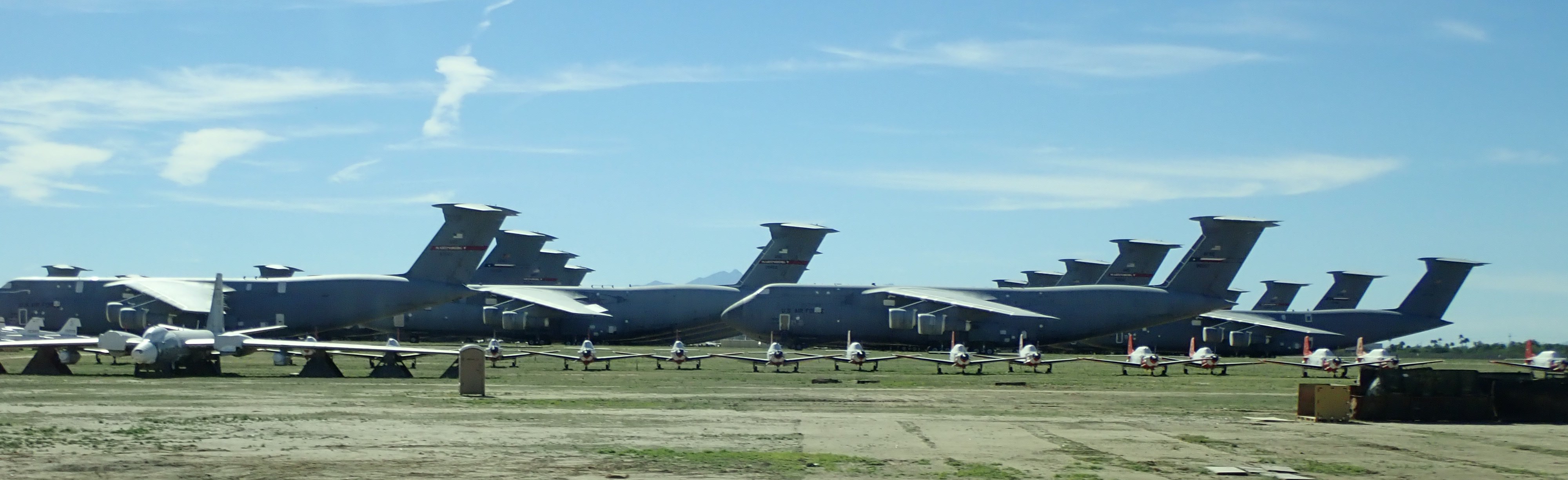 Some of the 55 C5A Galaxy aircraft at the Pima Air & Space Museum.
