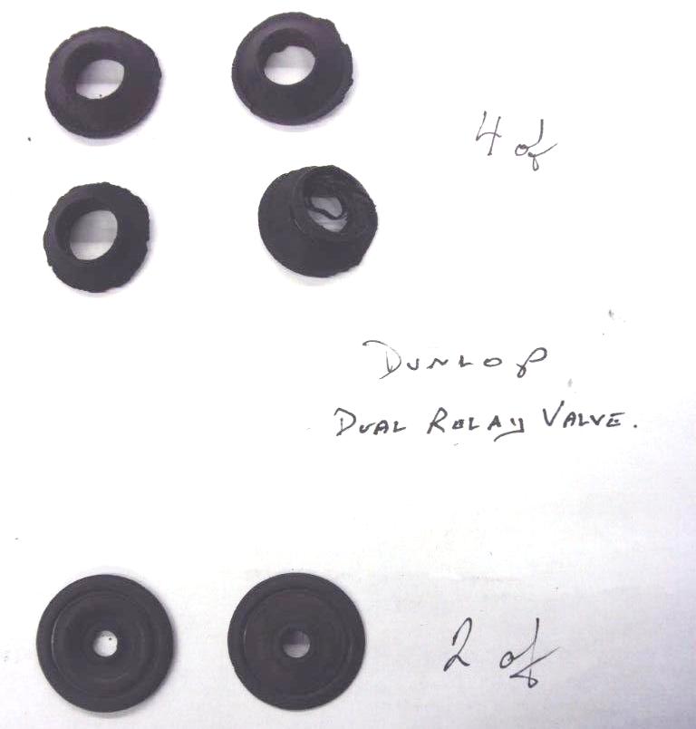 The Dunlop pneumatic brake valve (upper) and the crusty seals and cups that have to be replaced.