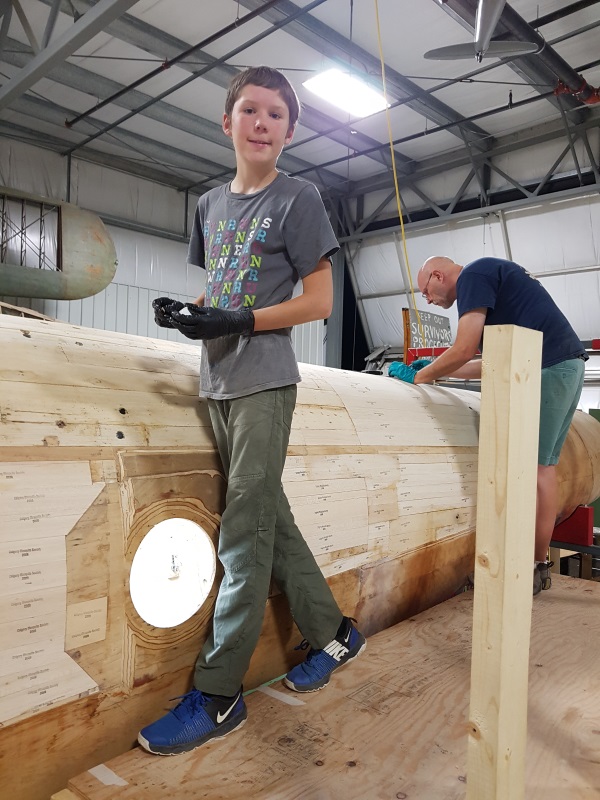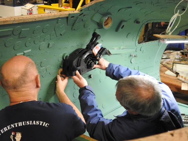 It is a testament to supportive parenting and a strong relationship that father Dave drives his son the hour each way on every Saturday that they are available, and spends the day with us just to indulge his son's passion for aviation in general and for the Mosquito in particular. All of our older regulars accept and engage our younger volunteers, even setting up skill building challenges that are directly related to the restoration of the aircraft. Our youngest contributor Matthew S. was recently able to prove to a skeptical teacher that yes, in fact, he is actually helping to restore a real de Havilland Mosquito.