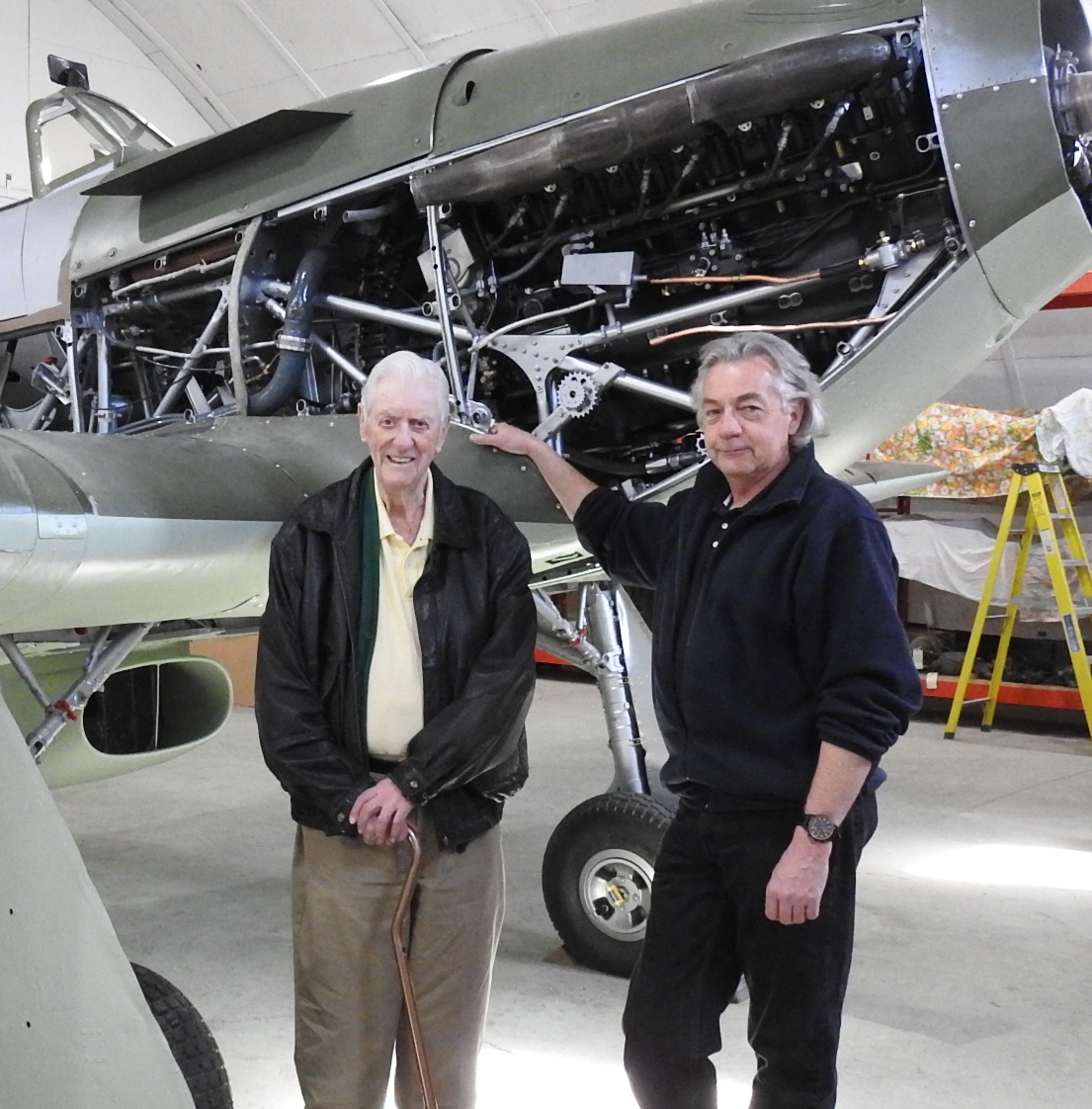 On March 31 we conducted our quarterly inspection of the Hurricane at HASI in Wetaskiwin, in the company of Gordon M. Hill. As was mentioned, Gordon is the last surviving person to have flown Hurricane 5389 when it was operated by 133 Squadron of the RCAF during World War II. No doubt Gordon and his experiences will be a prominent feature of the Hurricane's arrival events in Calgary, but as he had not seen the airplane since 2013, and then only as a parts collection, we thought he might appreciate a look at it in one piece and before it becomes a public spectacle. It was an honour and a pleasure to be able to spend the day with Gordon, not just for me, but it was also remarked upon by the crew working on the airplane. It served as a good reminder to all of us that the airplane is a vessel by which we HONOUR and EDUCATE the service and sacrifice of so many. Thank you Gordon.