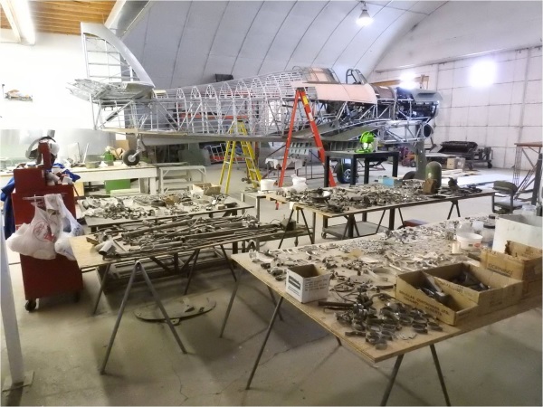 No wings, no cowlings, no fabric skins, no rudder and tables full of loose little bits waiting for a good home.