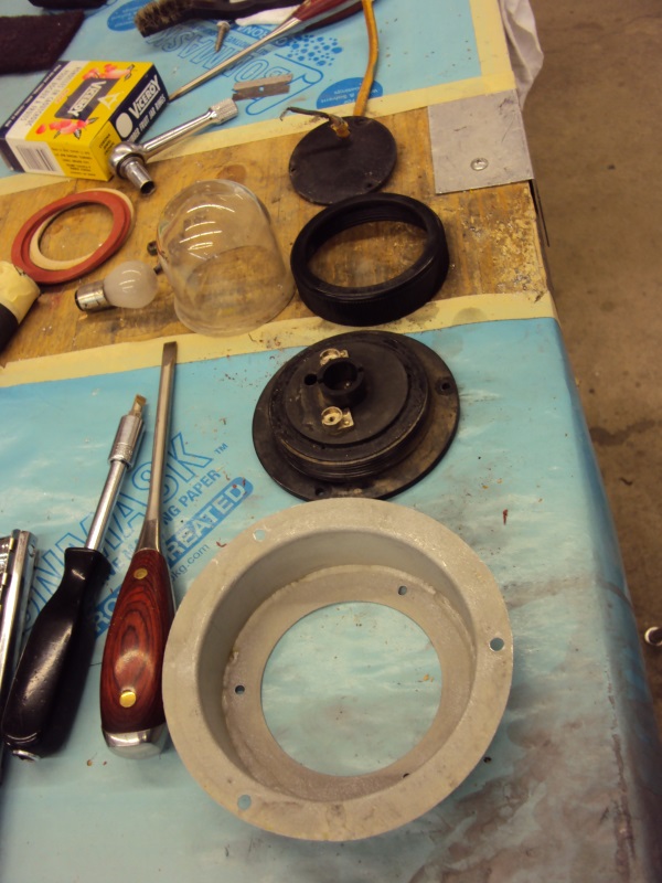 The components of the upper fuselage ID light. They need to be cleaned, repaired, primed, painted, wired, tested, assembled and finally installed in the cut out area at lower.
