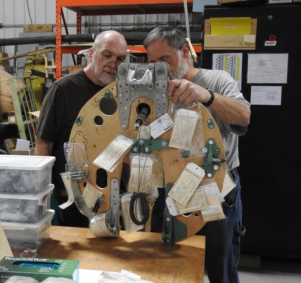Jack and Davey discuss what is required to complete bulkhead 7. Having finished structural repairs in this area we can now begin to reinstall all of the parts on this very critical component. Bulkhead 7 is the anchor point for the vertical stabilizer and rudder, the horizontal stabilizer and the tail wheel. Before installing all of the castings, brackets and hardware, we use a mockup to ensure that we have everything, know where it fits and how it all goes together.