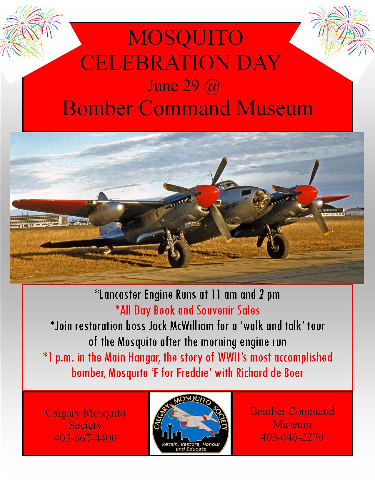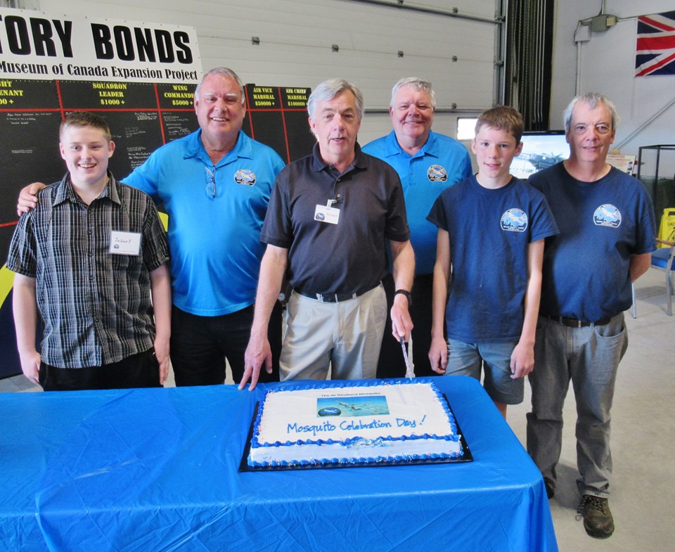 We owe a big thanks to our hosts at the Bomber Command Museum for supporting our special event day in so many ways with sound systems, a projector and screen, considerable organizing efforts as well as set up, tear down, clean up and promotion efforts and just to top it off, a Mosquito Celebration Cake which we shared with our volunteers and visitors. A big thank you from us to all of the Bomber Command Museum staff and volunteers. It was a great day!