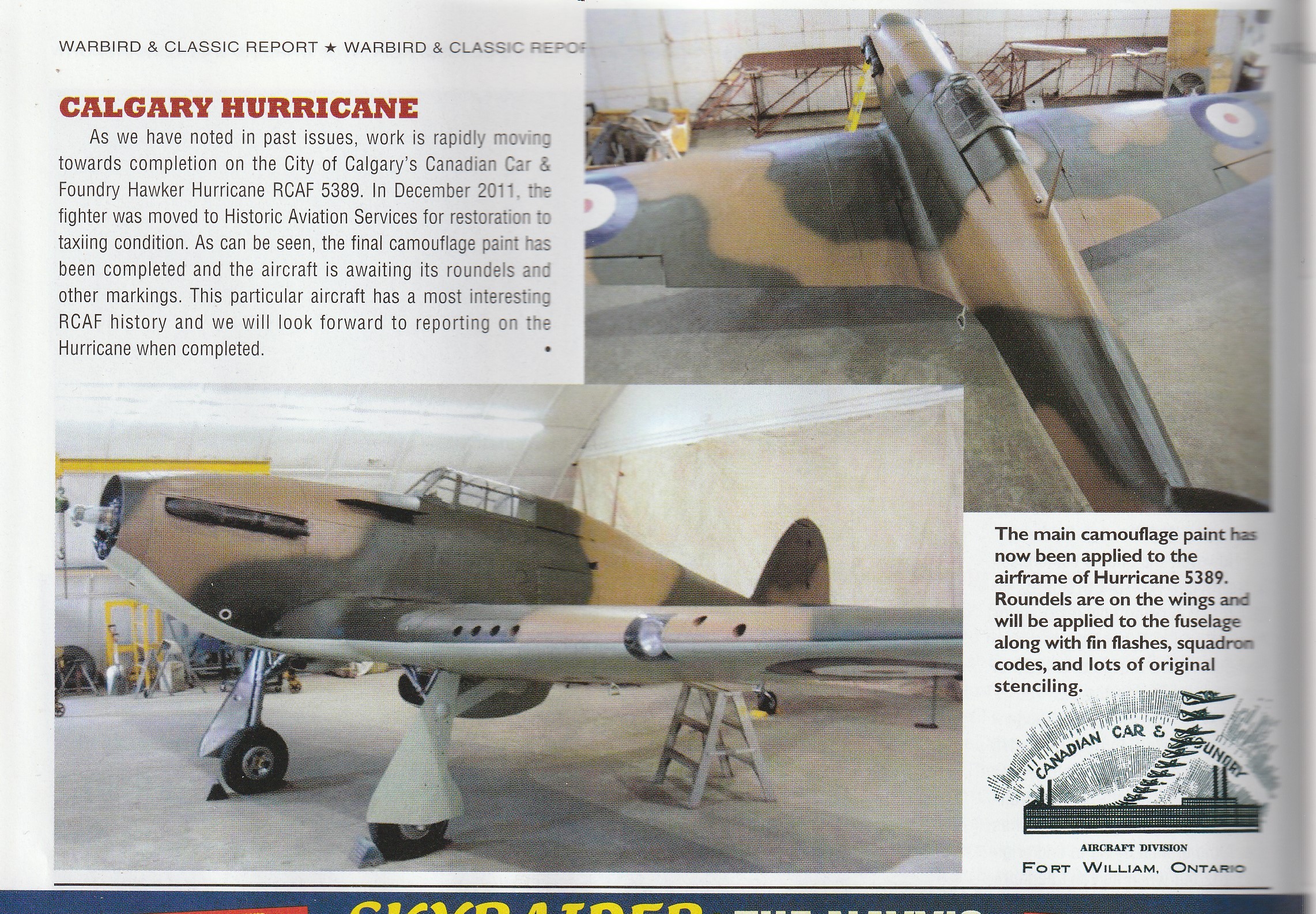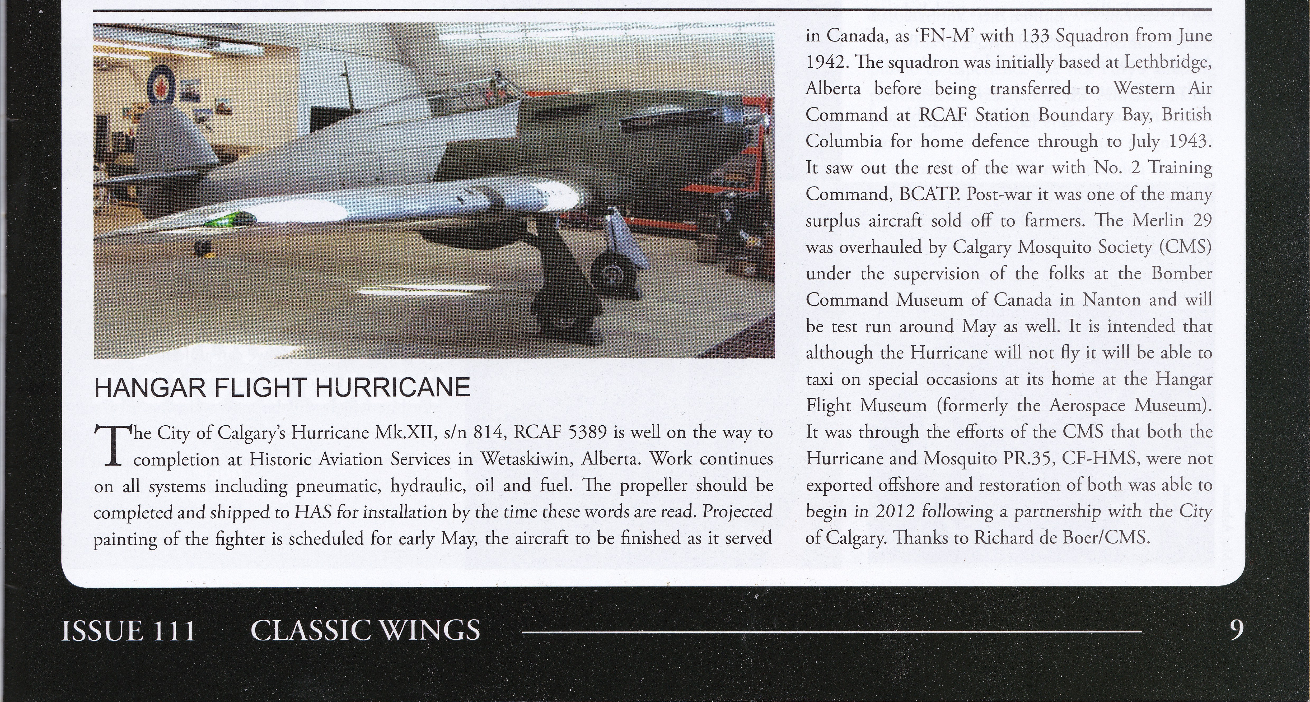 Classic Wings magazine out of New Zealand has been keeping tabs on our projects and in their recent spring edition they published a short update on the Hurricane. It can be found in Issue III, Vol. 24, No. 3.