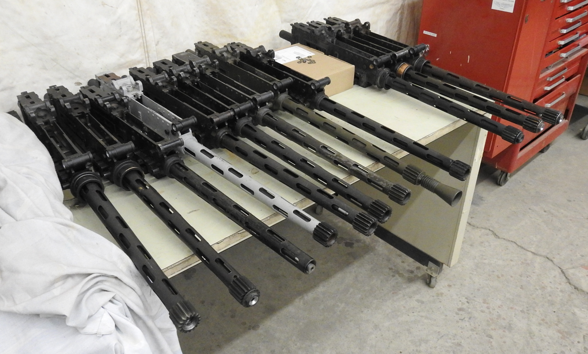 Our collection of original .303 Brownings for the Hurricane. Lots to be done to strip them down, complete with newly machined parts and then refinish them all to look like new.