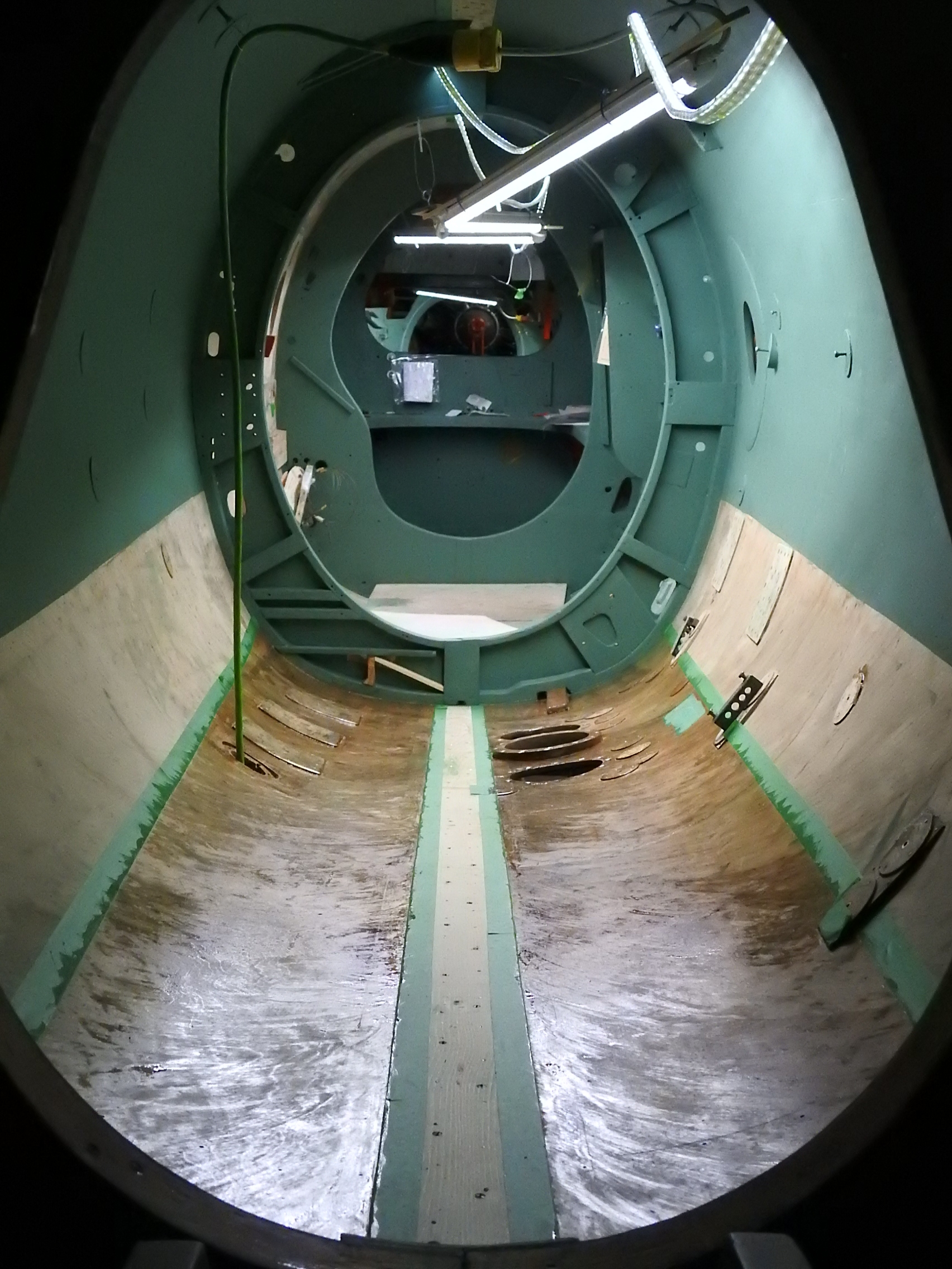 It’s almost all green and that is a very good thing. New green paint inside the fuselage signifies that all structural repairs have been successfully completed. It should be all green by the end of July.