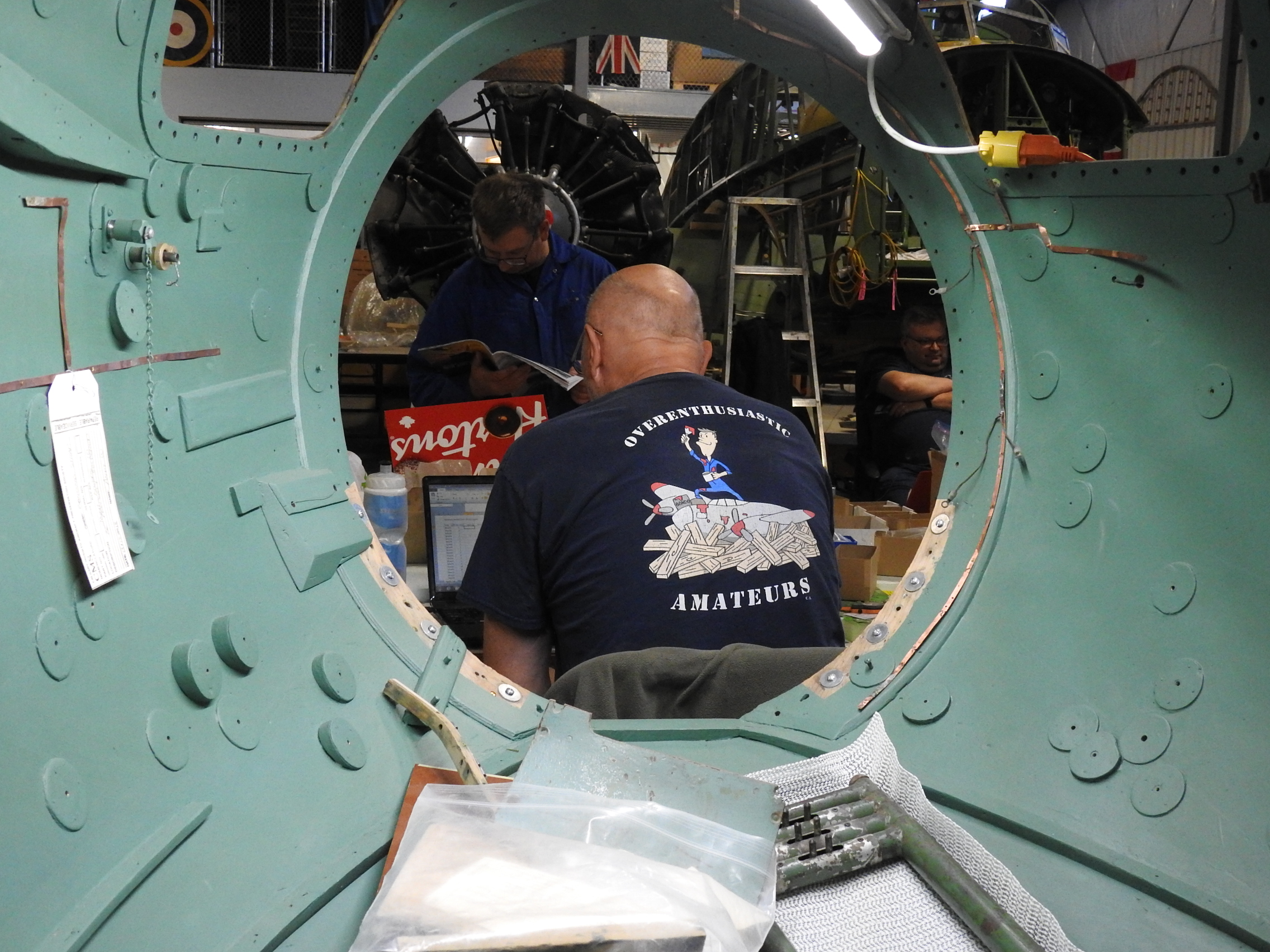 Our hosting facility for the Mosquito restoration, the Bomber Command Museum of Canada, has a busy schedule of special event days as we move through the spring months and into summer. These event days have a significant impact on our activities as we often spend a good deal of our day talking to visitors and fulfilling more of the 'Honour and Educate' and less of the 'Restore' pillars of our mandate.