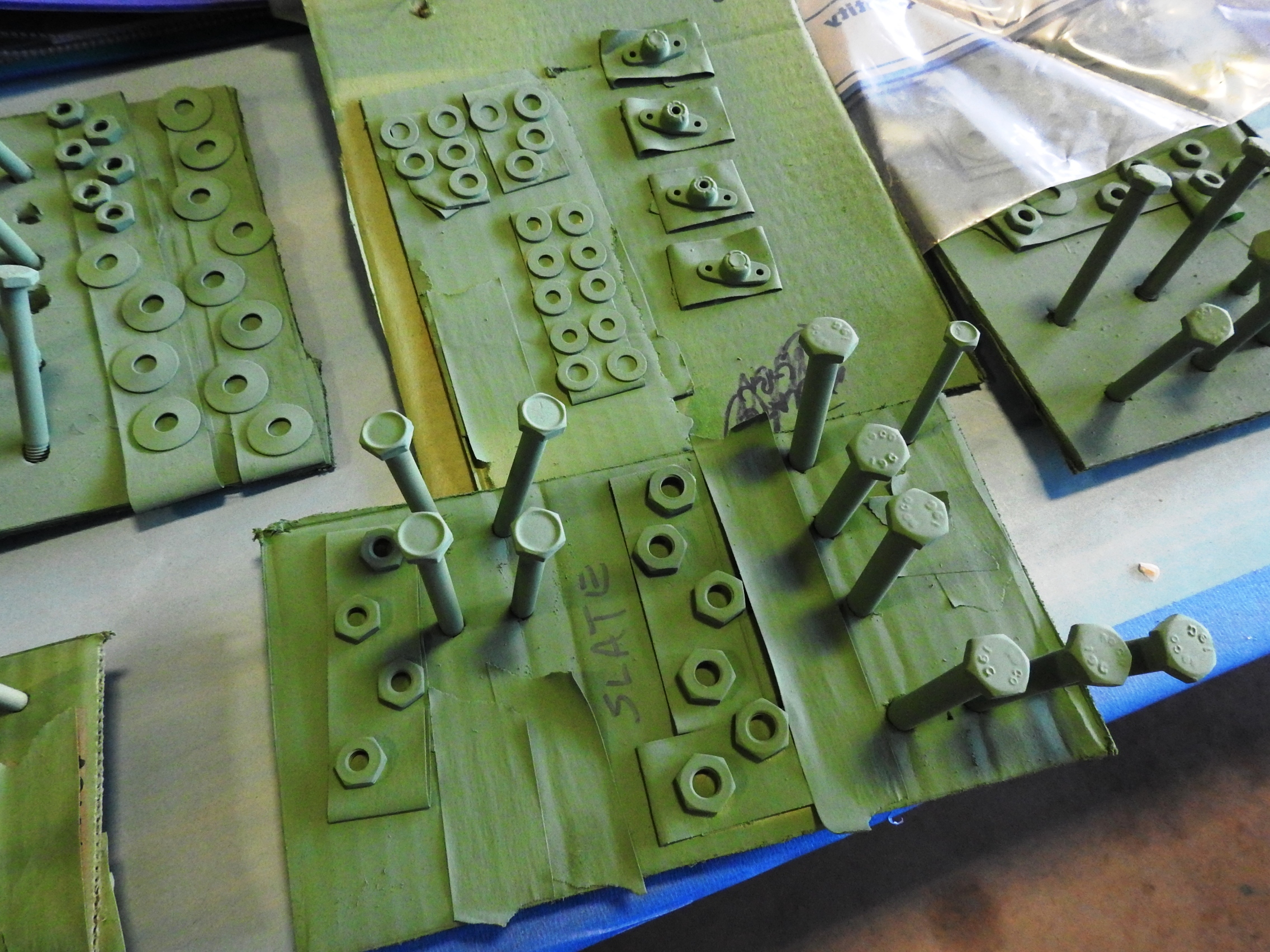 It’s all about the glamour, 2.0. Once all the hardware has been cleaned, prepare the painting boards. Prime one side and let it dry. Flip it over and prime the other side. Let it dry. Paint. Let it dry. Flip it over. Paint and let that side dry. Repeat as required.