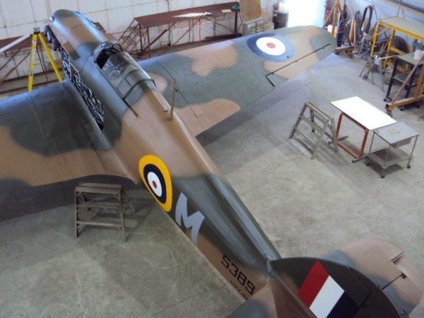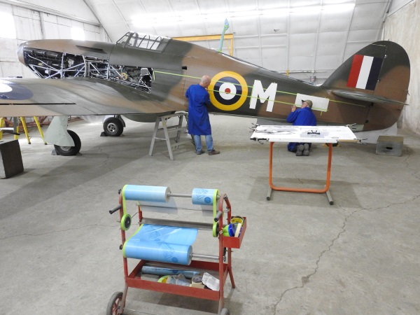 Looking glorious in all of her colours and markings. Greg and Buck establish the exact location of the squadron code letter (M) and the RCAF number (5389) prior to painting. This is where hundreds of hours of research into shades, stencils, position, style, placement, finish and more all come together as a thing of beauty realized.