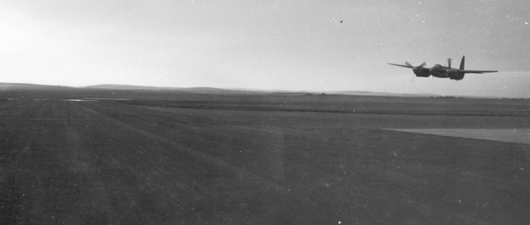Low and fast across the Calgary Airport on May 9, 1945 – the day after VE-Day and the day before the crash. [Glenbow Museum Archive]