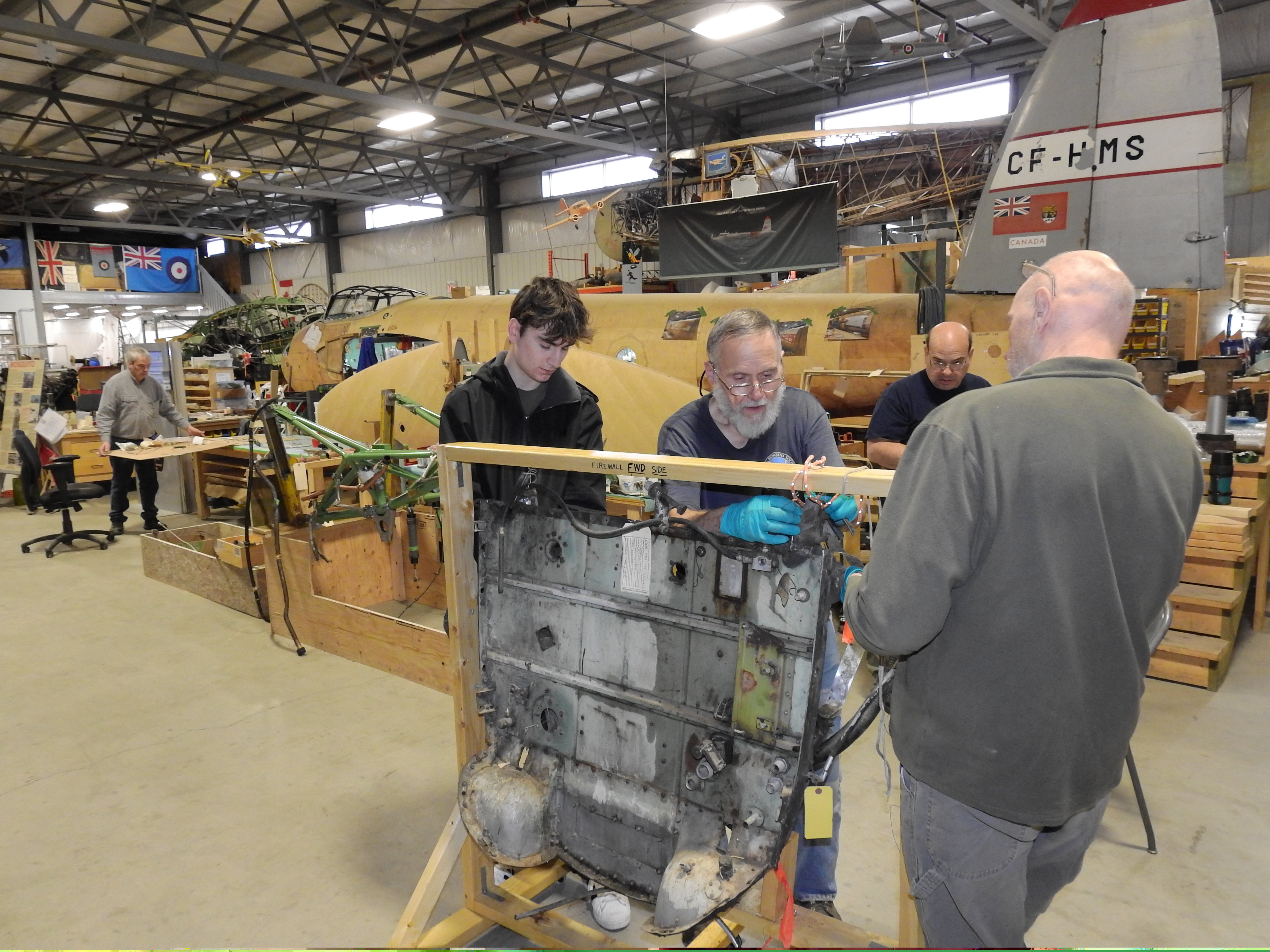 Davy D., Colette P. and Alan W. have finished dismantling and stripping the second engine firewall of all of its bits, pieces and major grunge. The firewall has now left the building with Don H., destined for Plastic-Blast Ltd. for a good bead blast cleaning. Having done one already, we hold hope that this side might be move a little quicker than did the last, but the cynic in me suggests that the jury is still out. Also in the firewall department, I need to order seal material and we are hoping the three inch wide strips will work.