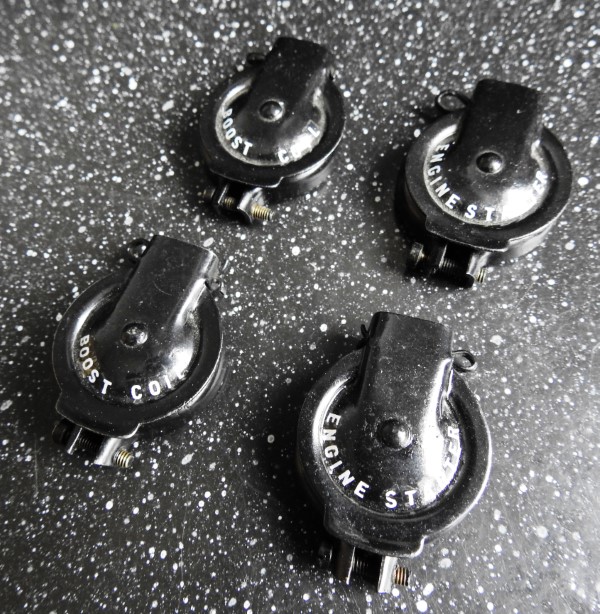 Swappin’ and tradin’ are often the name of the game in the old airplane biz. These are the push button switch covers for the starter and boost coils acquired from the Mosquito group in Windsor. Thx to their project lead Richard Fox for approving the trade from their end.