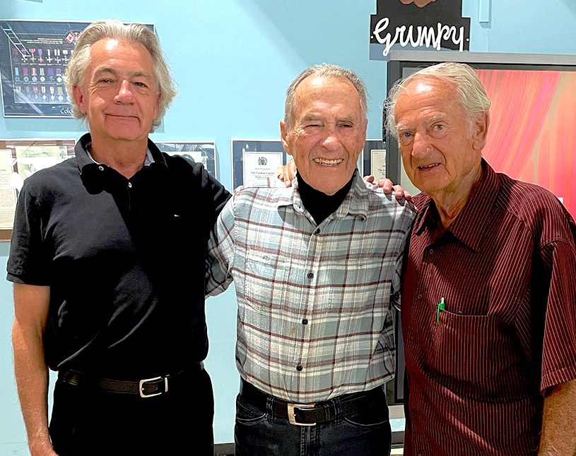 With George Stewart (center), last year at the Canadian Warplane Heritage after my talk about our Mosquito project. At right is Verne Schille, Spartan Mosquito pilot.