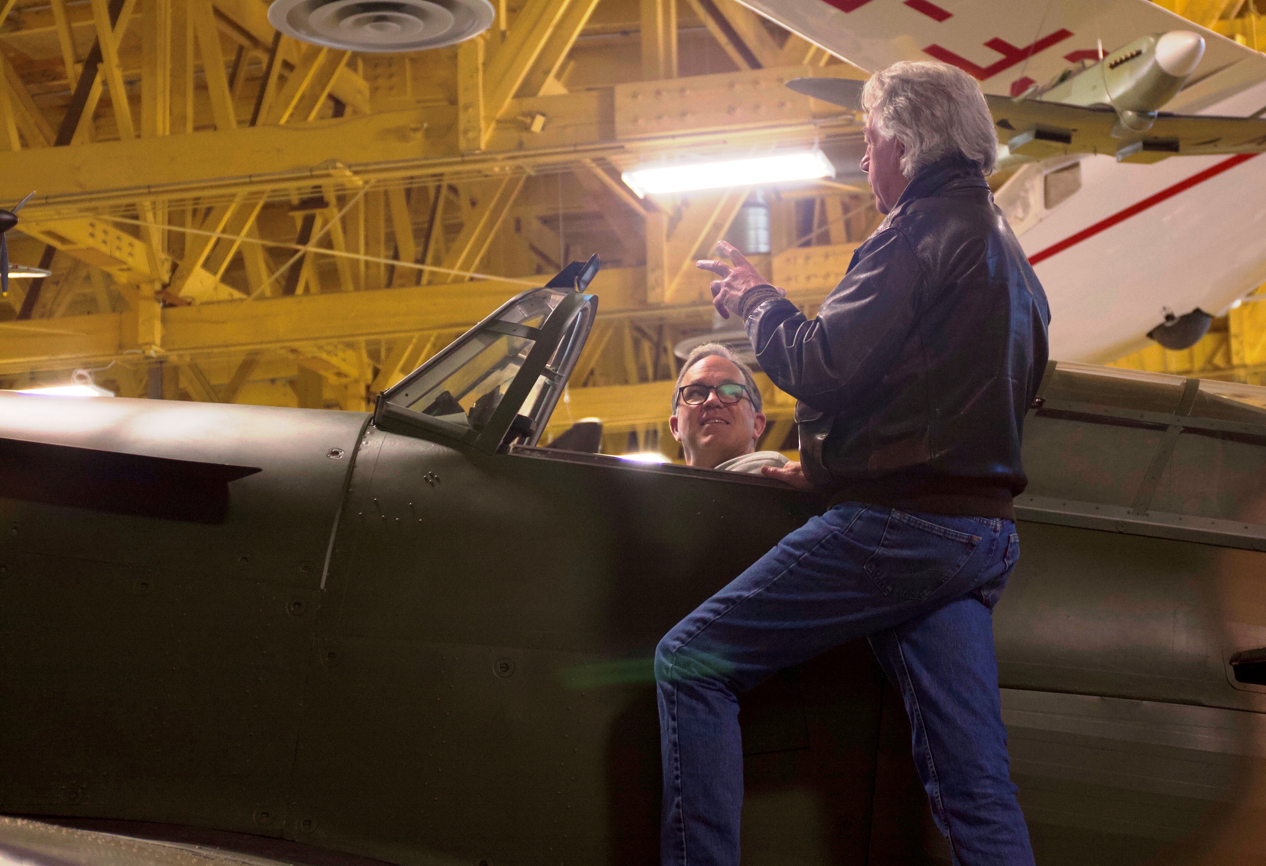 CMS members Sue and Michael Cain from Spokane, getting a firsthand look at the Hurricane, during their visit to Calgary in April. Michael first saw the airplanes in our charge when he was a wee lad and the Mosquito and Hurricane were stored at the Centennial Planetarium.