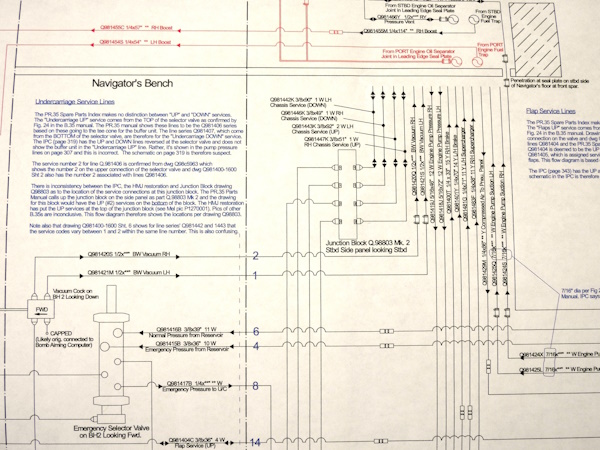 To aid this process Andy invested 85 hours at home and has just had printed a sizeable diagram showing how the hydraulic, pneumatic and various other lines run from the cockpit right to the end of the fuselage. Amazing work. Yea, detail loving engineers!