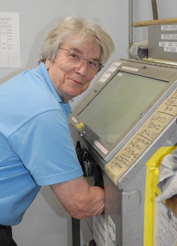 In June, members David and Jan Coeshall visited us from the UK. They were last here just before we moved the Mosquito from Calgary to Nanton in 2012. David is a very devoted and long time fan of the type and has been involved with several Mosquito aircrew and restoration organizations in the UK for many years. It was David who invited us to speak at the Mosquito Aircrew Reunion at the RAF Club in London in 2011. Once we prevented the overseas sale of the Mosquito and moved it to Nanton to begin the restoration, David turned over to us, his lifelong collection of Mosquito parts, which required two metal crates to transport. It was also the Coeshalls who spotted and secured the armoured glass windscreen for the Hurricane and the ferrules for the Mosquito. And how did we repay them? When they came to visit the restoration in action last month, we put them straight to work.