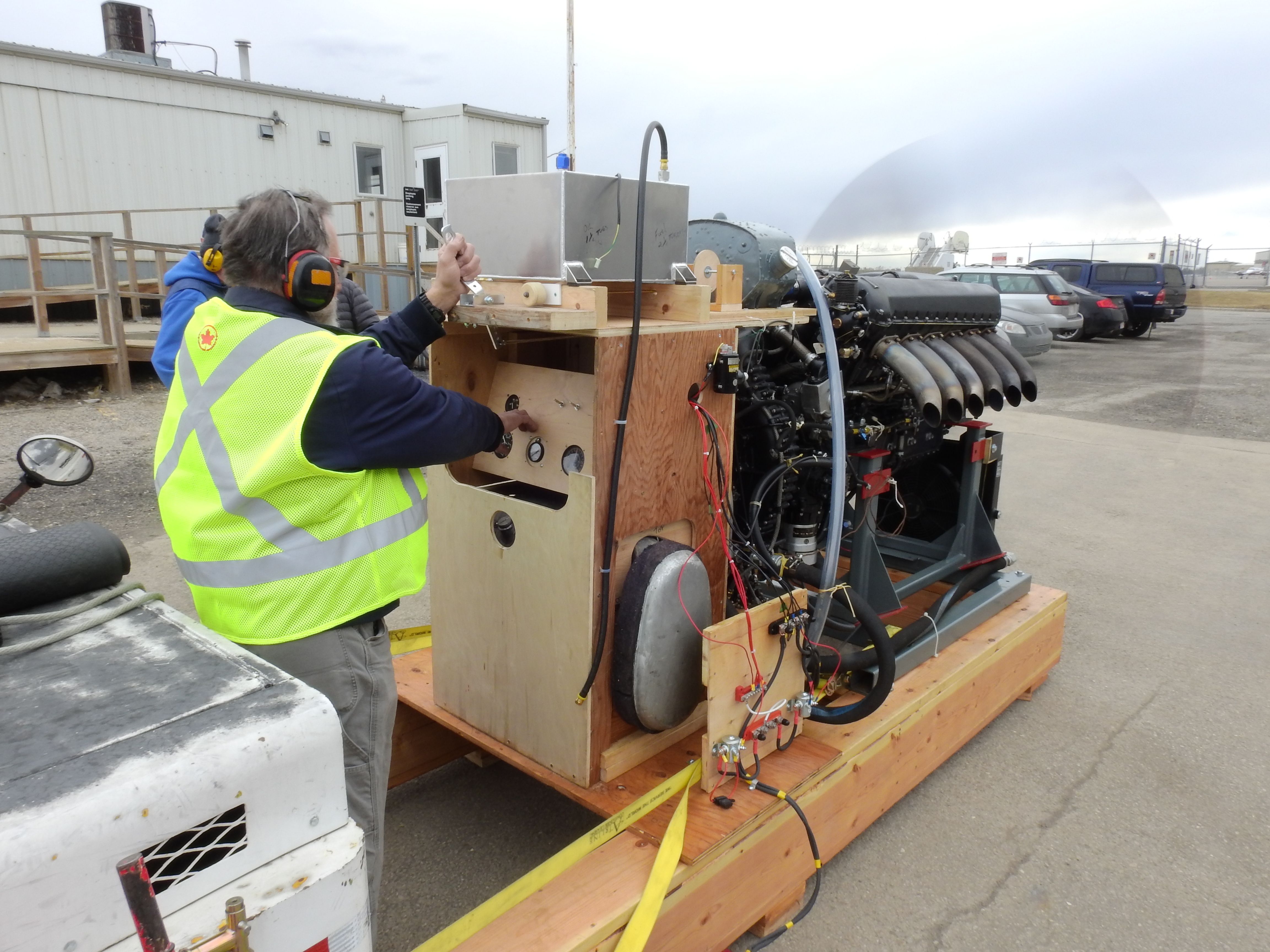 On the good news side of the ledger, the engine starts easily and runs well. As one of our crew observed, it's the test stand that is at the root of most of the issues, not the engine itself. Jack removed the tach and took it to Aerocorp, where Tony Chung informed us that a bevel gear was shot. Friend and supporter Darrell Brown in Ontario was able to ship out a spare tach for us to gut for a new gear. Thank you Darrell! While it is being overhauled, Jack sourced a newer model tach and remote generator. He also ordered metal pipes for the coolant system to deal with the collapsing rubber hoses as we need to get some additional run in time on the engine before we reinstall it in the Hurricane airframe. Our thanks again to Dr. Brian Taylor, 'Mr. Lanc' with the Bomber Command Museum, for coming up to assist with the engine start and run. Progress this quarter has been hampered by job demands for Jack, which have kept him out of the country for weeks at a time.