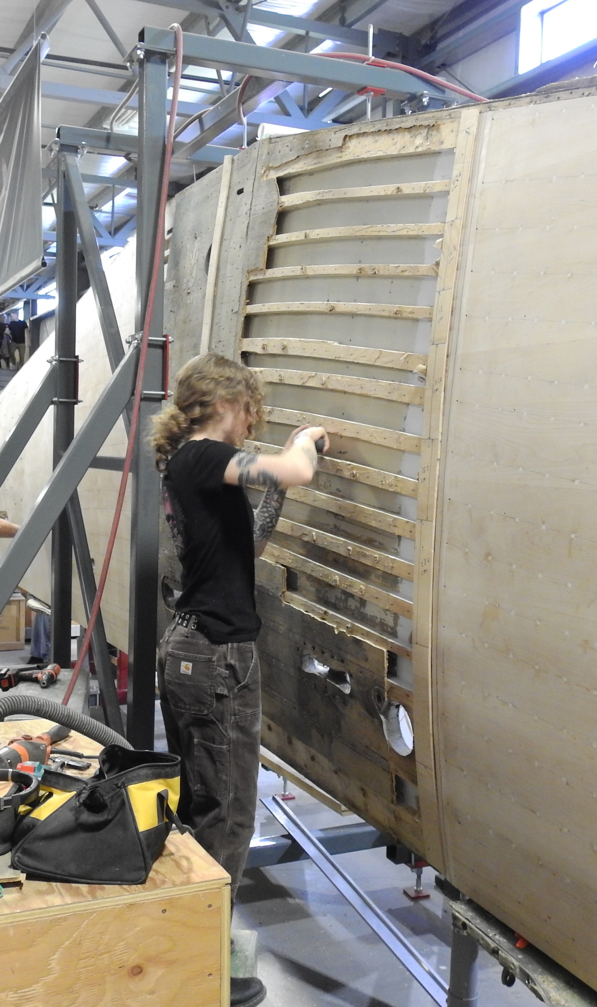 Long time volunteer Nigel C. trekked back from his new home in Malaysia for a couple of weeks to work on the project, only to get assigned to 'you guessed it', scraping paint. Nigel has the advantage of height and long limbs when it comes to cleaning areas that others can't reach. Good to see you back Nigel.