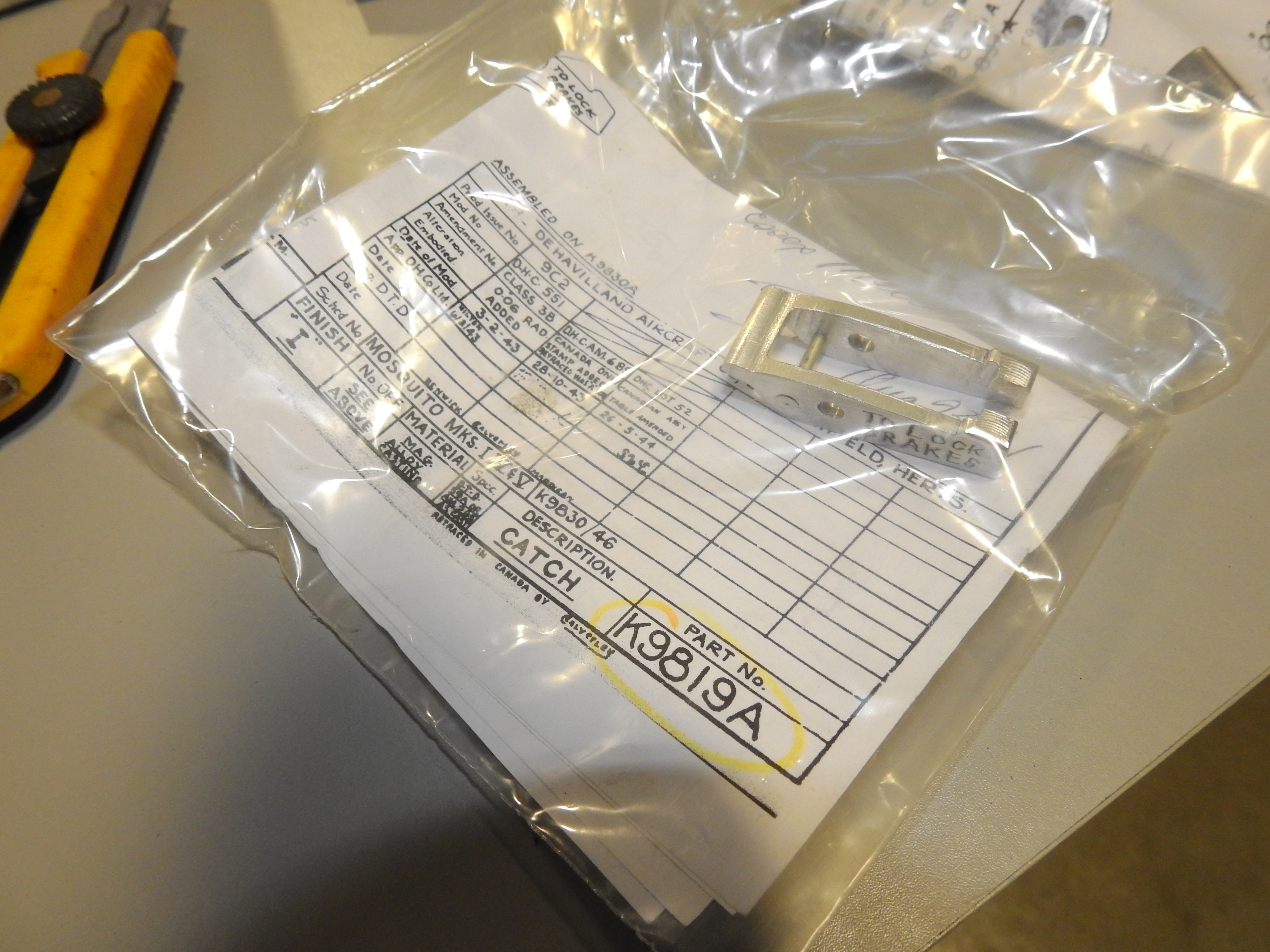 Our friends with the Mosquito project in Windsor, ON continue to honour their end of our trade deals with more goodies manufactured by their skilled machinists who fired off a shoebox sized package of newly made Mossie bits and bobs for us. Thanks to their project lead, Richard Fox.