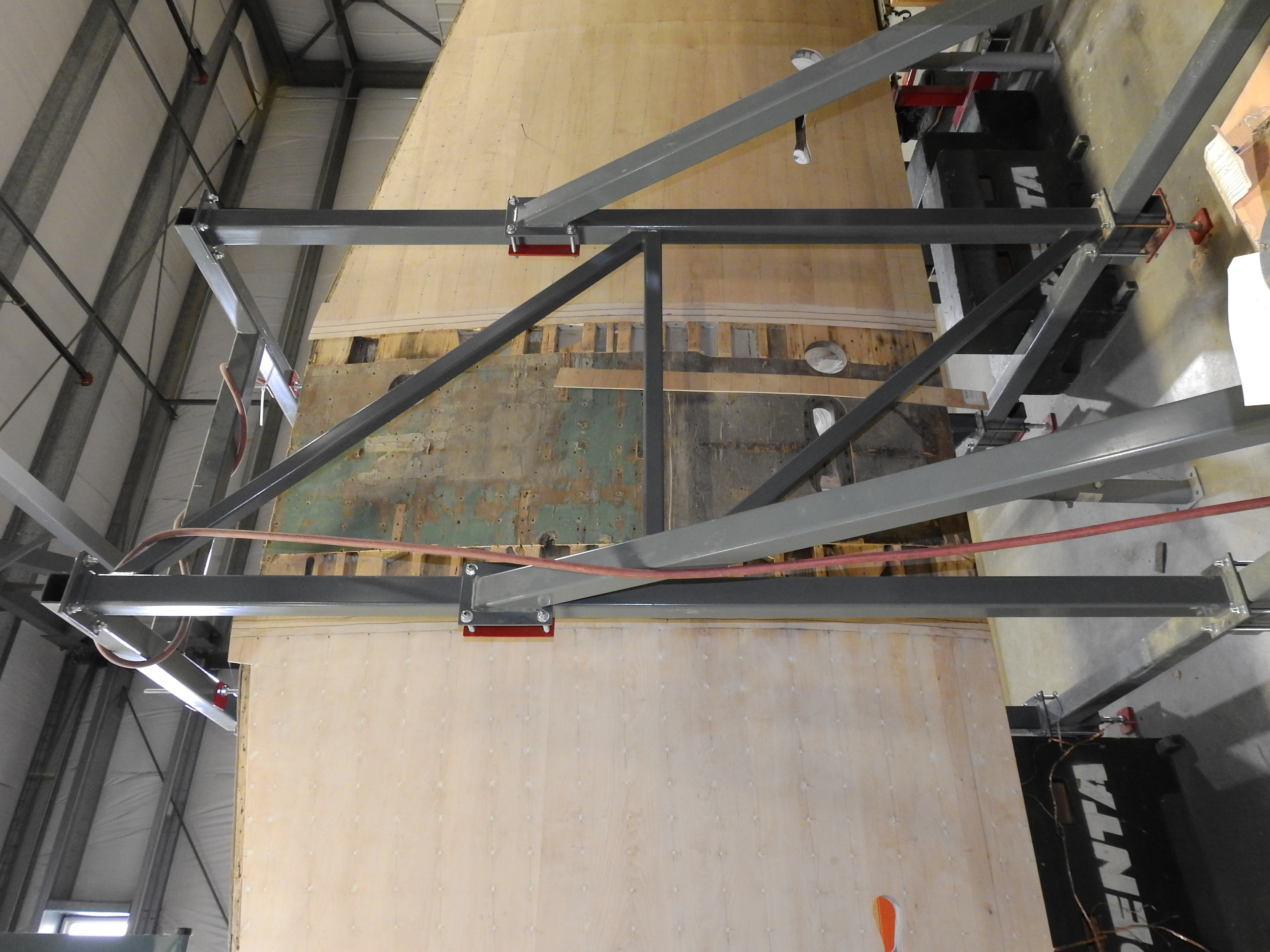 As Gary completes the last top skin replacement, we can shift our focus to the leading and trailing edges of the wing. In order to do this, we will look at flipping the wing 90 degrees, from the vertical to its horizontal orientation over the winter.