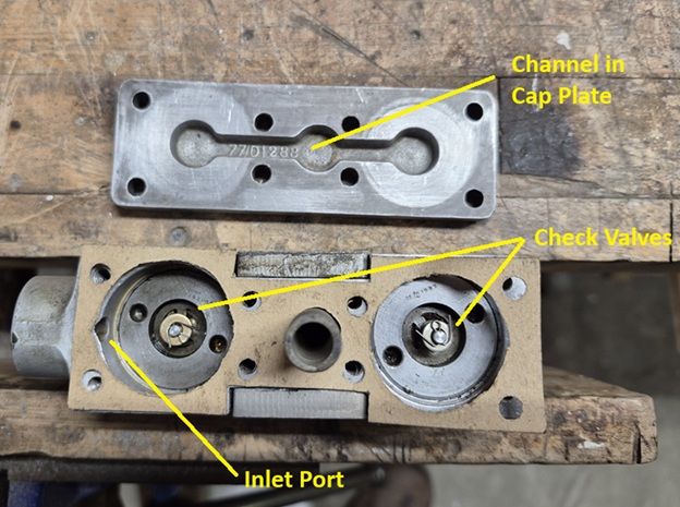 One of Andy W's projects this quarter has been to overhaul the emergency hydraulic hand pump located in the cockpit. Not even the seemingly bottomless resources of the internet can provide a manual or documentation for this 80 year old Turner Mfg. Co. Ltd hand pump, which, depending on the mod status of our airplane, may operate just the undercarriage, or it may also handle the tail wheel and flaps. After a lot of head scratching, and with the input of Gary T. and Dick S., Andy created his own 9 page illustrated analysis of its bits and workings, and he figures we are in the 'probably works' and 'good enough' territory with it. Given that we will never be retracting the undercarriage, this level of work and analysis is illustrative of the determination and quality he invests in our restoration project.