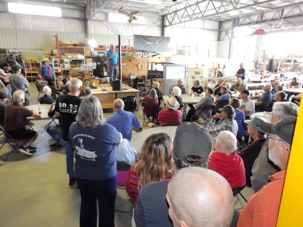 VP and restoration boss, Jack M. did his usual lunchtime restoration update talk to a full house and in the afternoon, I presented a new talk in the main hangar on 'Facts and Follies: The Truth About the Origins of the Mosquito' to a crowd of about 170 people.