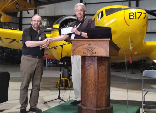 We were also pleased, on this day, to accept a donation from Wes Kraus, President of the Medicine Hat chapter of the Canadian Aviation Historical Society. Our thanks to them. We were also supported by the participation of a number of volunteers who specifically come out to help with book and merch sales: Penny S. as well as Bert and Bev F. All in all, an excellent opportunity to 'Honour and Educate'.